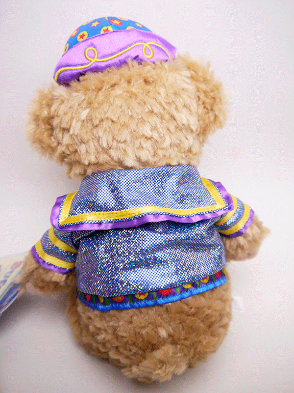 ダッフィーが発売されて10周年記念のコスチュームを身につけています。